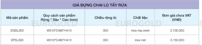 Giá chai lọ tẩy rửa Eurogold inox nan - ray trượt giảm chấn EGSL300 là phụ kiện bếp không thể thiếu, giúp bạn giải quyết những bất tiện khi lau chùi dọn dẹp chính căn bếp nhà mình.