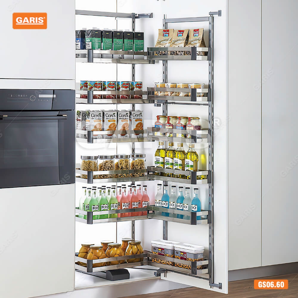 Là sản phẩm kệ rổ 6 tầng để đồ khô cao cấp, thuộc một trong số các phụ kiện tủ bếp thông minh của Garis.