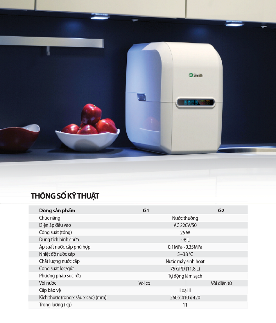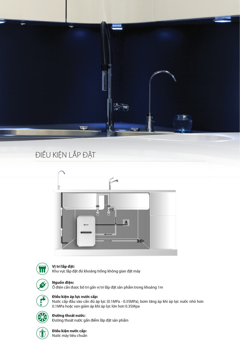 Với Thiết kế đẹp, lắp đặt thuận tiện, cảnh báo thay thế lõi lọc tích hợp trên thân máy đảm bảo nguồn nước tinh khiết cho cả nhà.