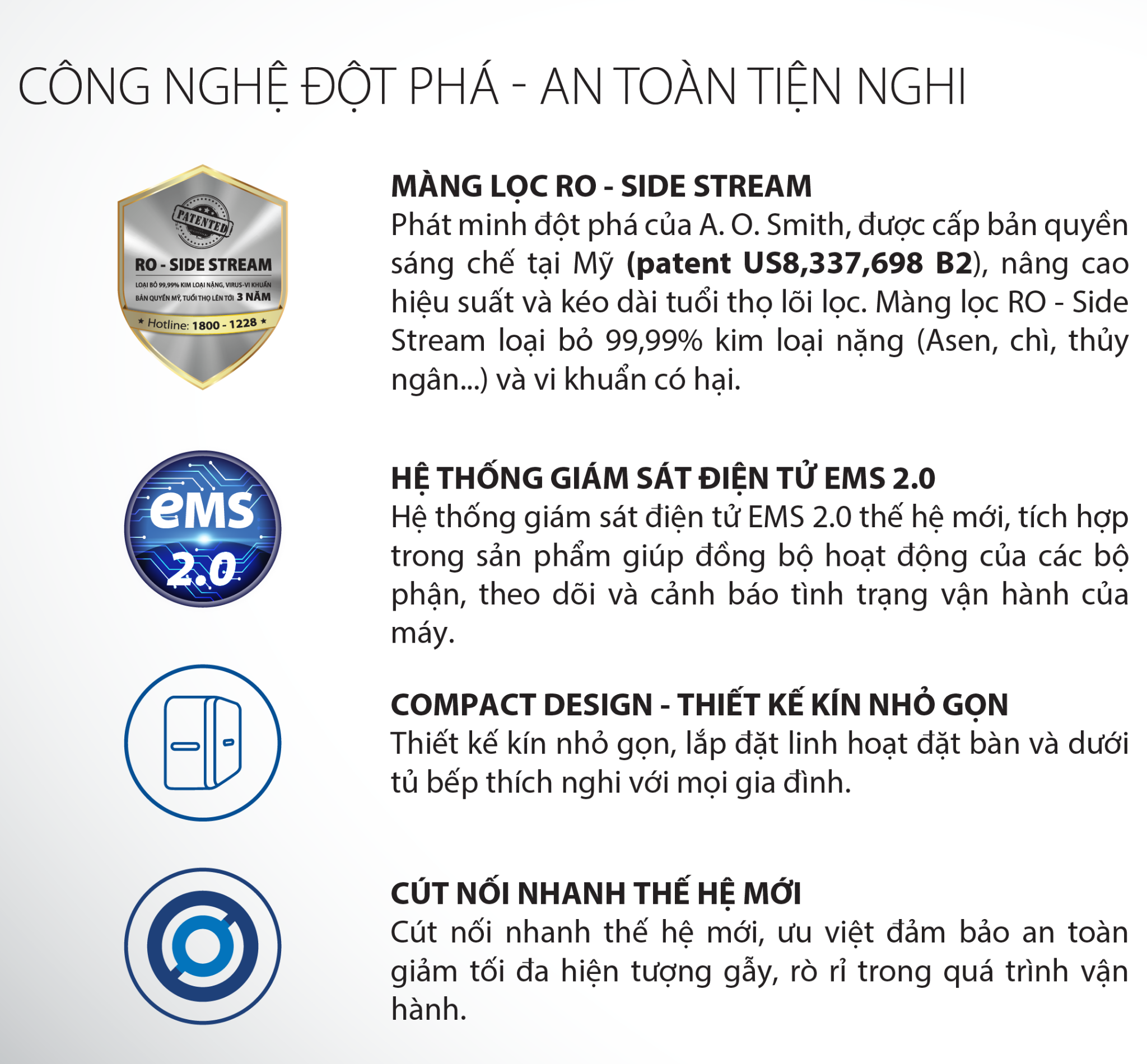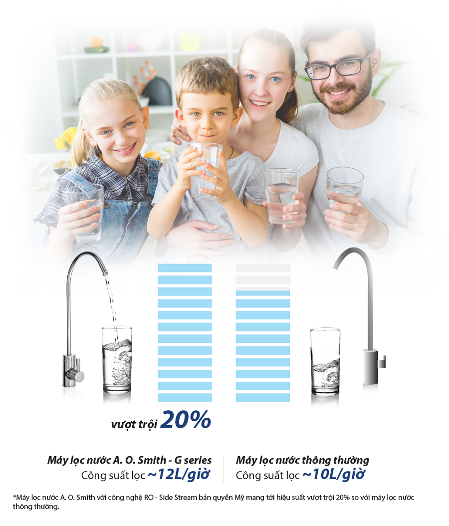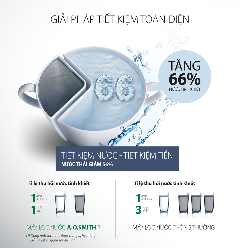 Giúp tăng thêm 66% lượng nước tinh khiết, giảm 56% lượng nước thải, kéo dài tuổi thọ màng lọc trung bình hơn 1,5 lần.