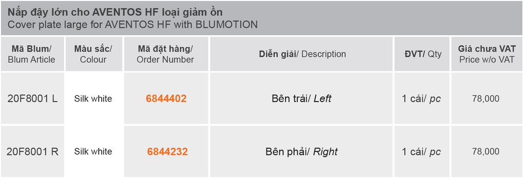 Lưu ý: Sản phẩm này chỉ là Nắp đậy cho Aventos HF, muốn sử dụng trọn bộ cơ cần mua thêm bộ hộp lực của Tay nâng Blum Aventos HF và Bộ cánh tay Aventos HF